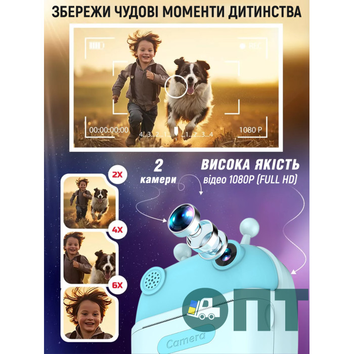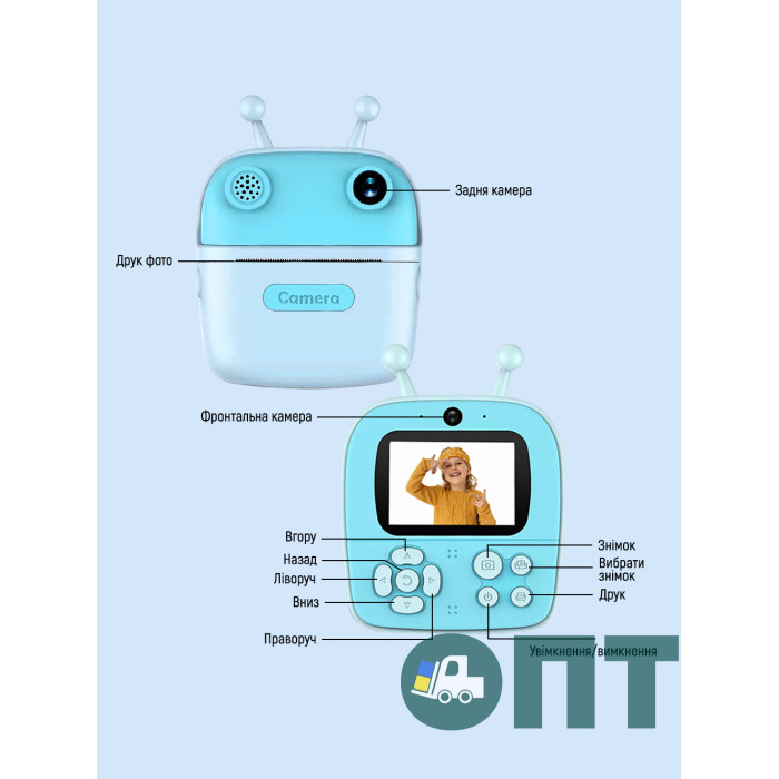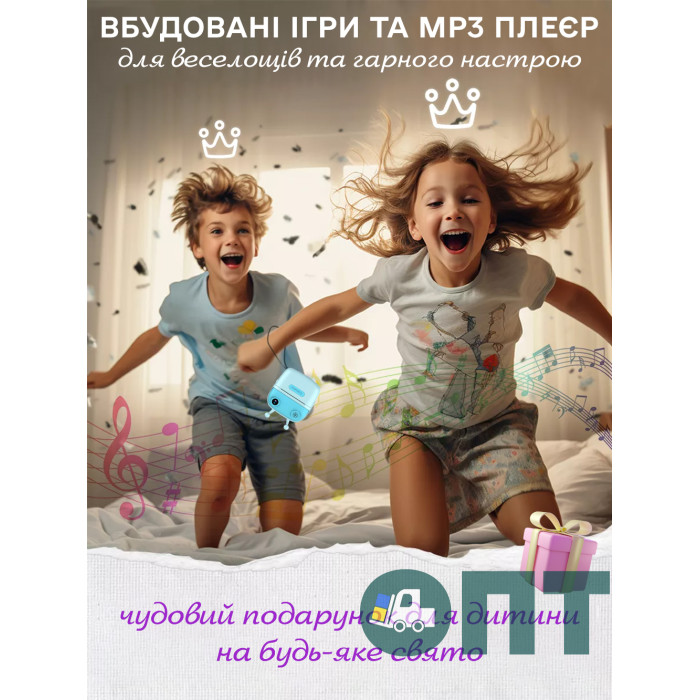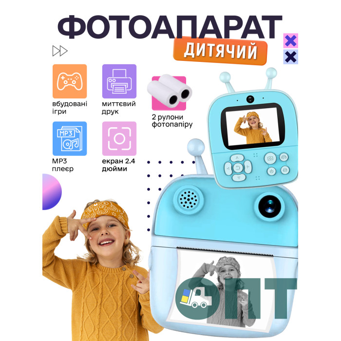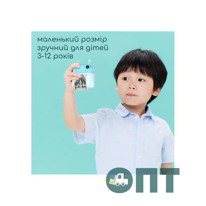 Дитячий фотоапарат миттєвого друку 5в1 + відео камера + принтер швидкий друк фото + mp3 плеєр + вбудовані ігри (Блакитний) 2 рулони фотопапіру в комплекті