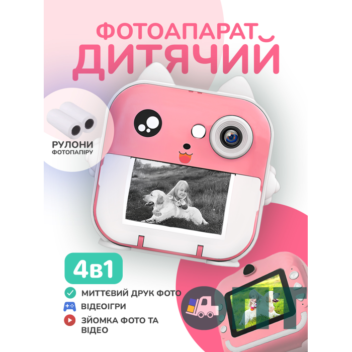 Фотоаппарат 4 в 1: Принтер моментальной печати, Видеокамера Full HD 1920x1080, Встроенные видеоигры